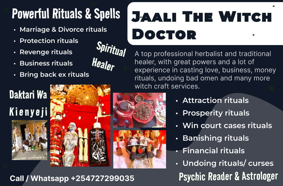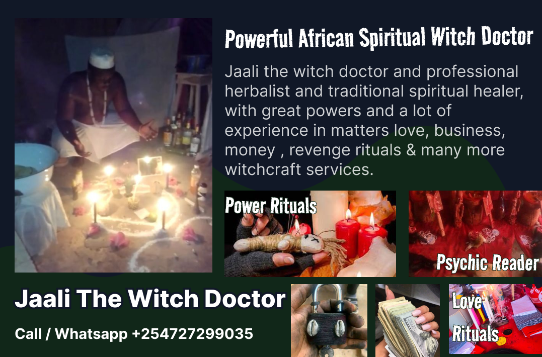 Baba & Mama Jaali, are revered Witch Doctors, combining traditional African healing practices with ancestral insights to offer powerful rituals that bring transformation. Whether you seek to restore lost love, find financial stability, protect against negative forces, or embrace personal empowerment, Baba & Mama Jaali is here to guide you. Tap into a world of healing and prosperity today—discover the magic of true spiritual wisdom with the most powerful witch doctor.